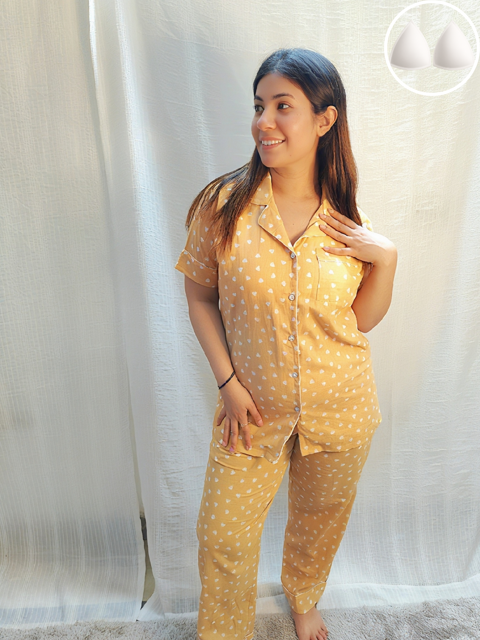 Soft cotton, sunny glow, and heart-filled dreams. Cotton and removable Padding.